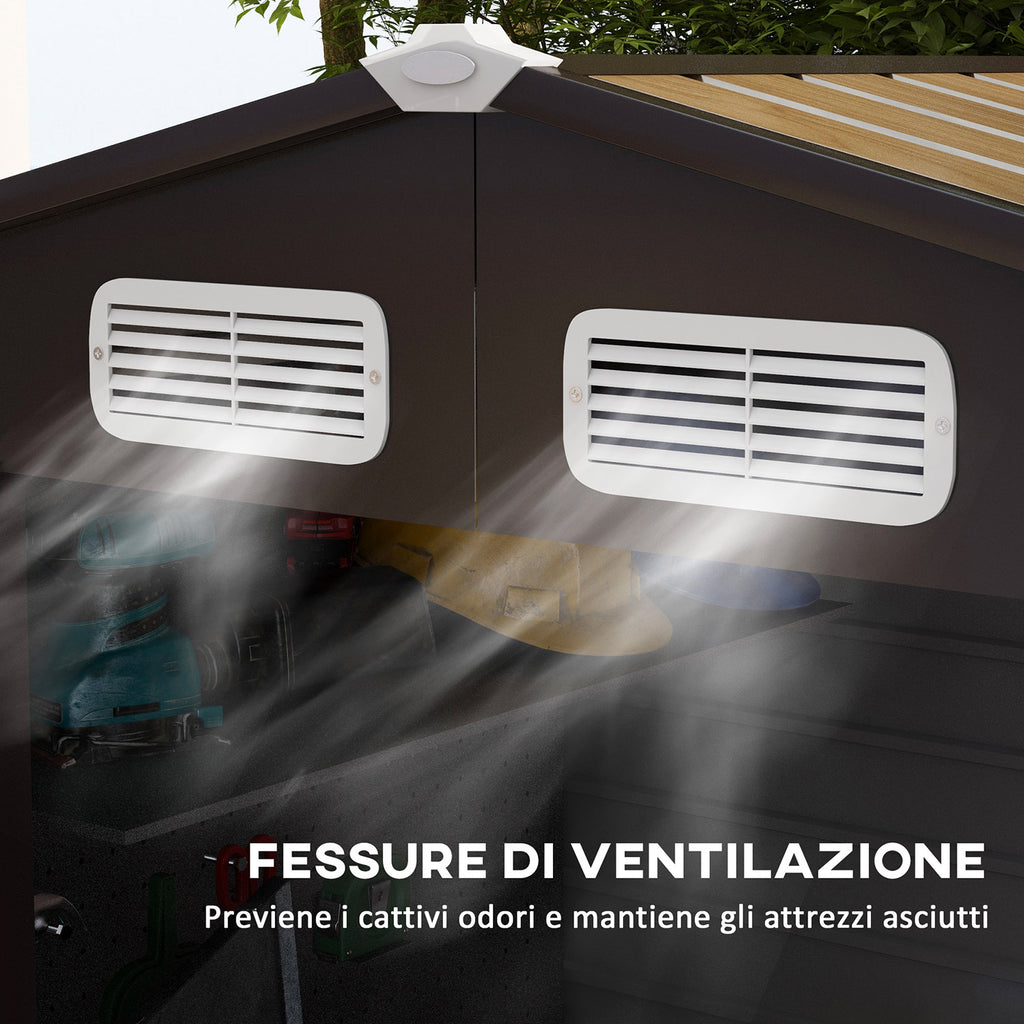 - Bocchette di ventilazione superiori per assicurare il passaggio dell'aria all'interno del capanno porta attrezzi