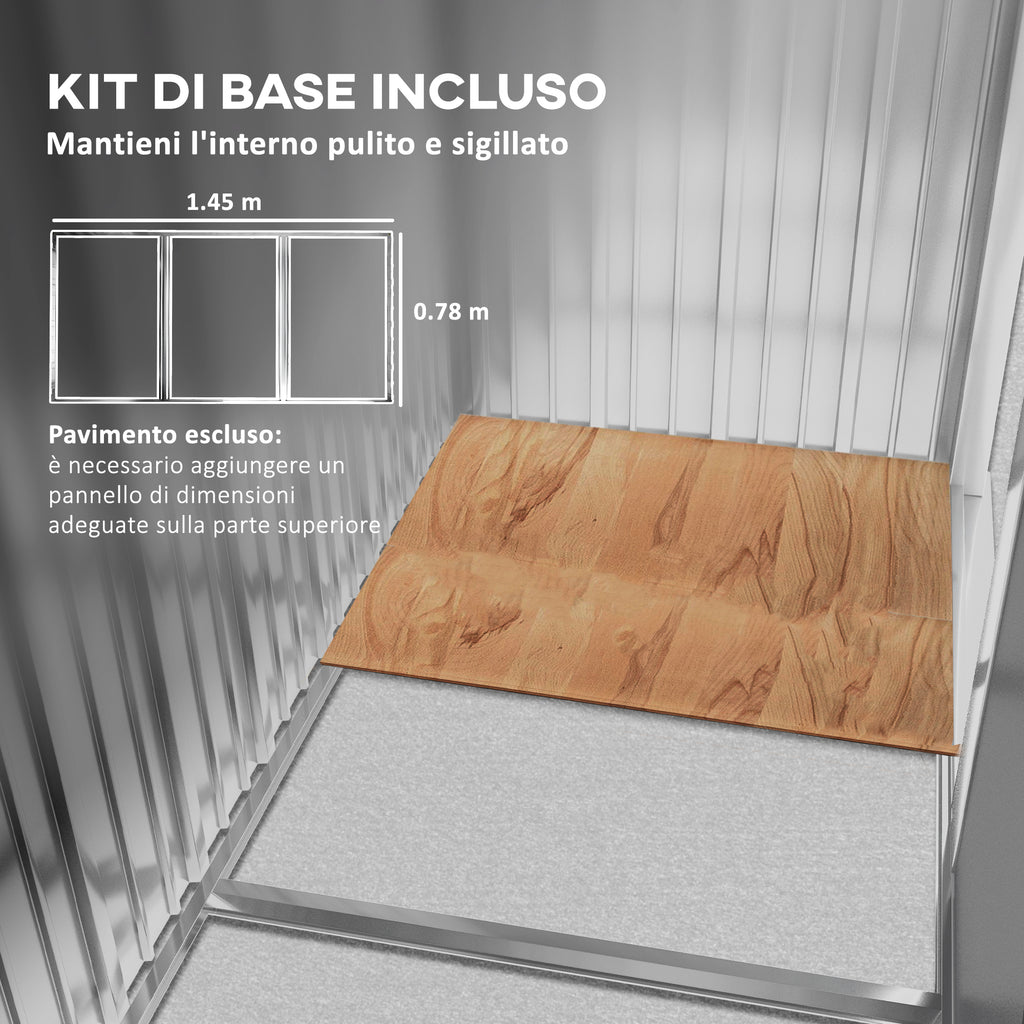 Casetta da Giardino Porta Attrezzi 161x95x163/181cm in Acciaio con Porta Bloccabile Grigio