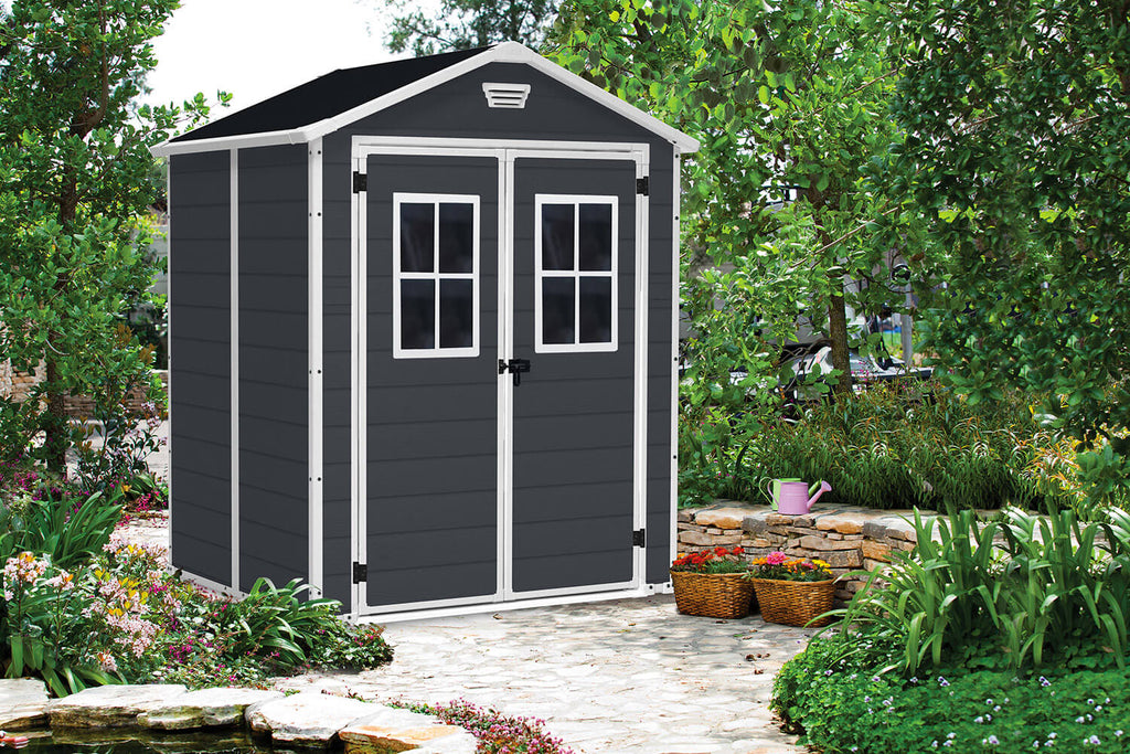 Mantieni pulito e in ordine il tuo giardino con Manor 6x5, casetta di medie dimensioni dotata di una struttura con pannelli a doppia parete resistente agli agenti atmosferici (eccetto gli eventi climatici più estremi), di un pavimento rialzato che mantiene il contenuto della casetta asciutto e pulito, di una porta a due ante per un accesso facilitato anche agli oggetti di grandi dimensioni, di fori di ventilazione e di una chiusura lucchettabile.