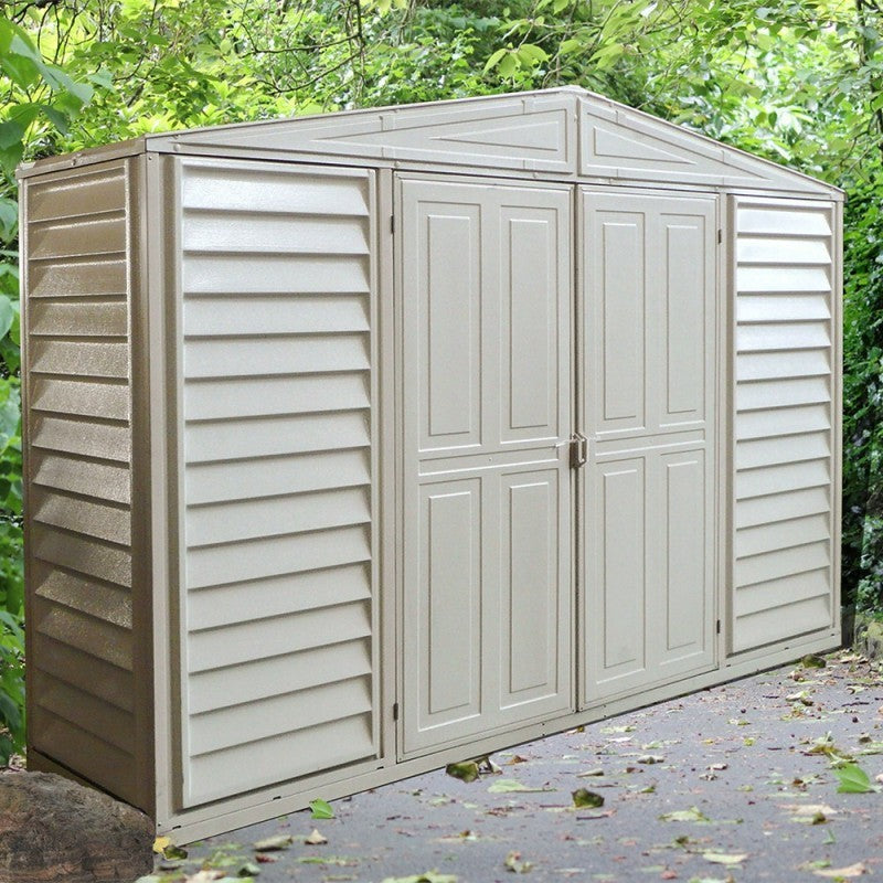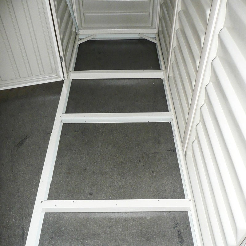 La Casetta include un kit di fondamenta, un tetto sovrapposto, una doppia porta larga con maniglie bloccabili e sfiato dell'aria. Ideale per essere situata al lato di una casa, di una recinzione, di un garage o persino di un seminterrato. Questa casetta da giardino è resistente alle intemperie, è di lunga durata ed è priva di manutenzione: non arrugginisce, non si ammacca e non marcisce.