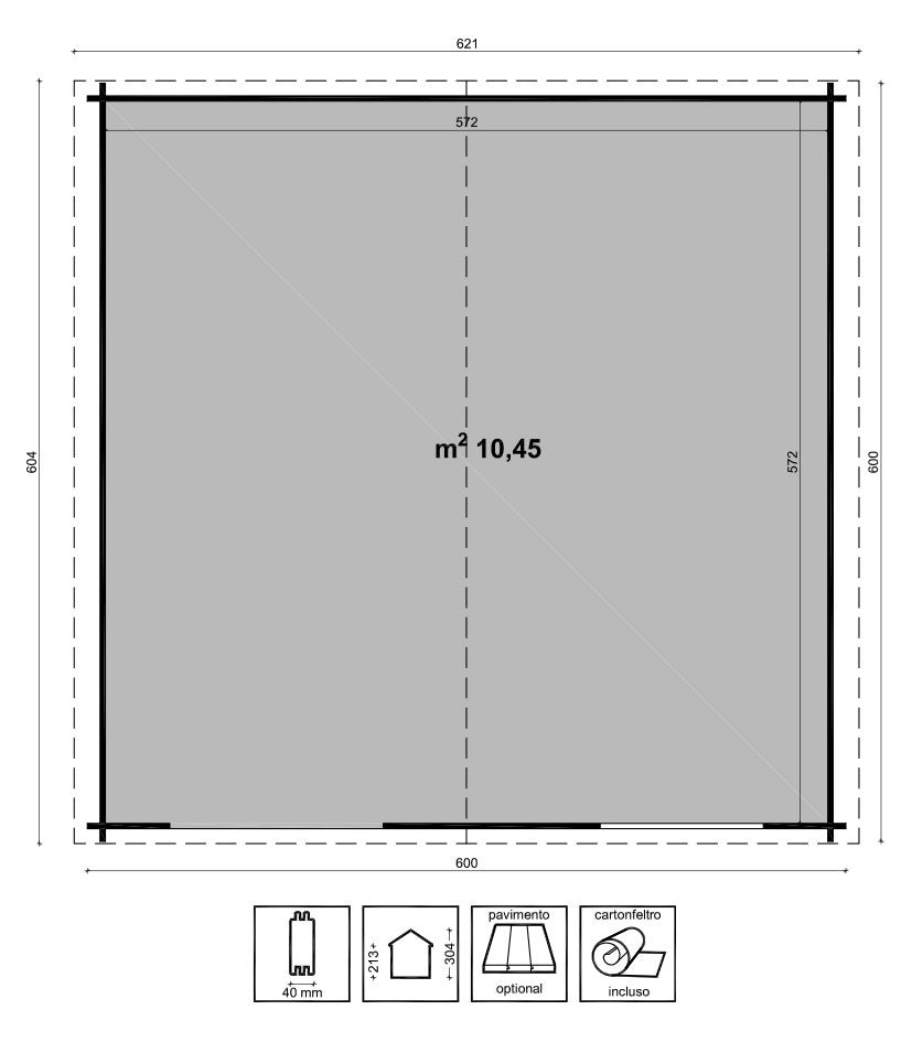 Casetta da Giardino Porta Doppia 1 Finestra 600x600 cm in Legno Stella