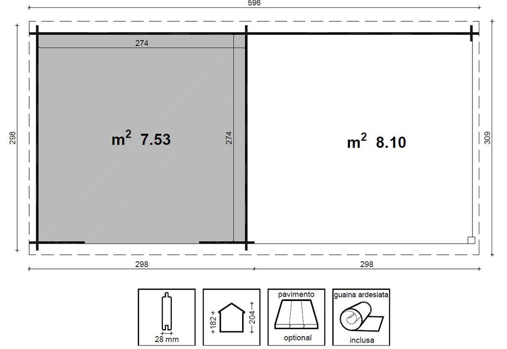 - Dimensioni porticato a terra cm 298x298