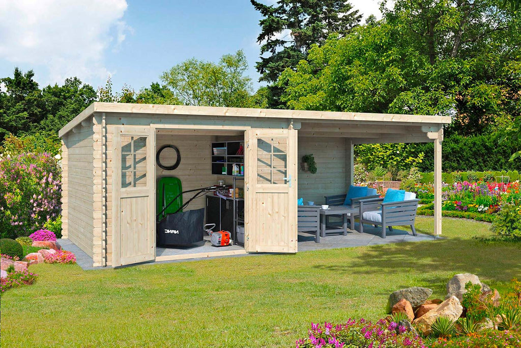 Casetta da Giardino Porta Doppia con Porticato Laterale 600x300 cm in Legno Livia