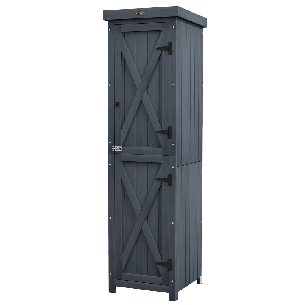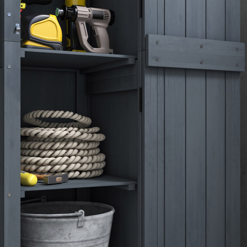 Casetta Porta Attrezzi a 3 Ripiani con Tetto in Metallo 45x45x160 cm in Legno da Abete Grigio