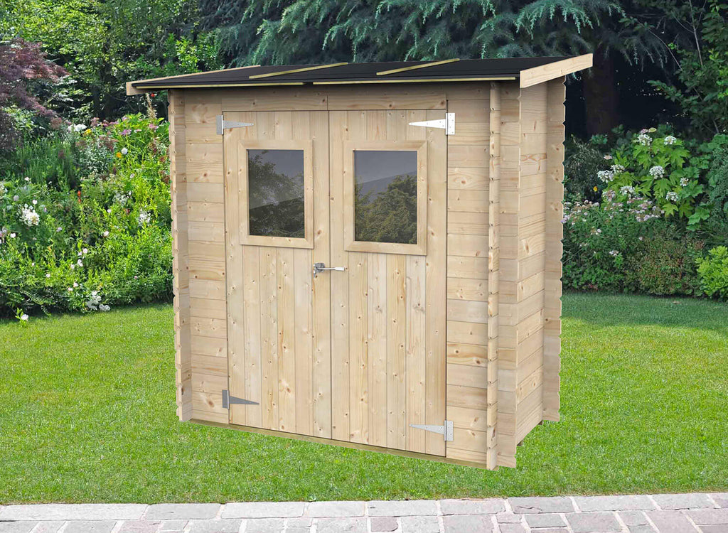 Casetta Box da Giardino per Attrezzi 198x98 cm con Porta Doppia Finestrata in Legno Naturale