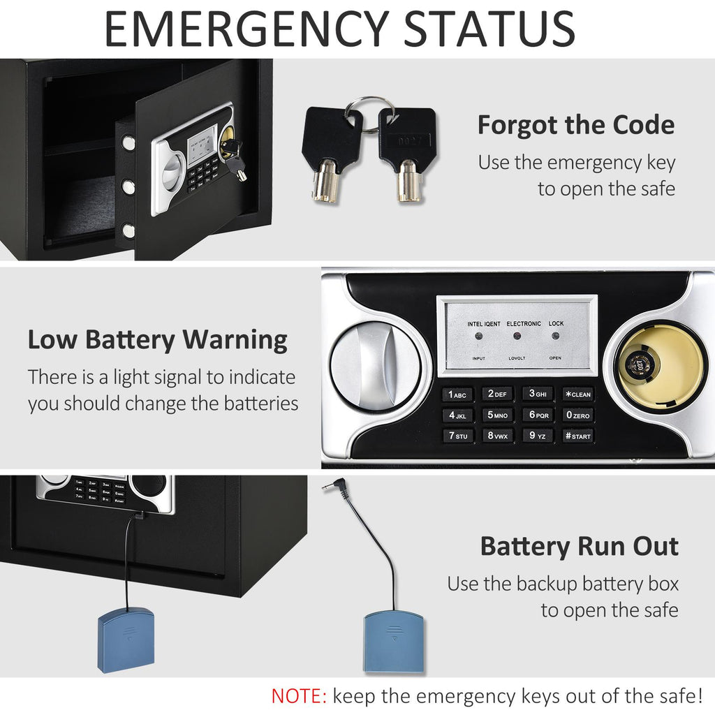 La mini cassaforte è la scelta perfetta per chi ha bisogno di un posto sicuro in cui riporre i propri oggetti preziosi. Puoi impostare 2 codici o aprire la cassetta con la chiave di emergenza se li dimentichi. Puoi fissarla al muro o al pavimento con le viti, per una maggiore sicurezza. Perfetta come cassaforte da camera o in ufficio, non dovrai preoccuparti di lasciare i tuoi oggetti incustoditi quando non ci sei!