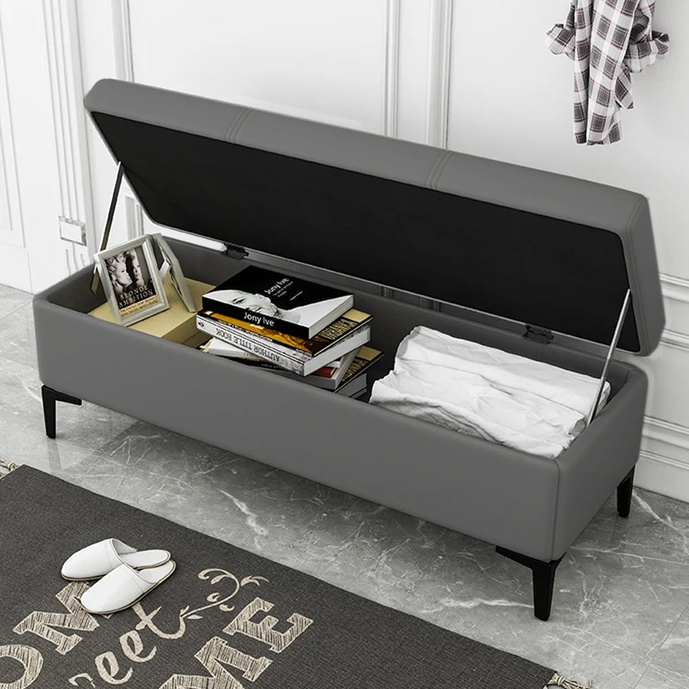 Cassapanca Contenitore Ecopelle Panca Pouf con Piedini in Metallo Grigio Scuro