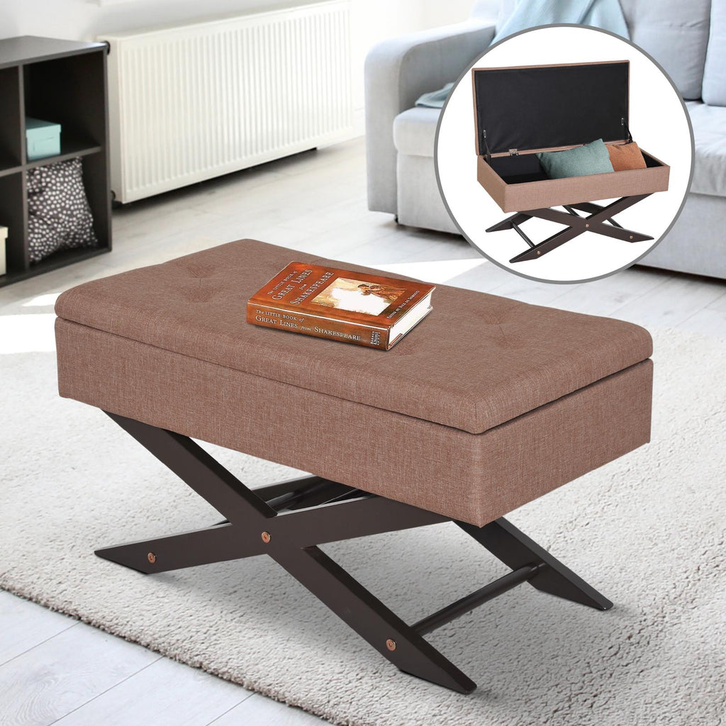 Cassapanca Pouf Contenitore Imbottito Marrone 80x40x42 cm