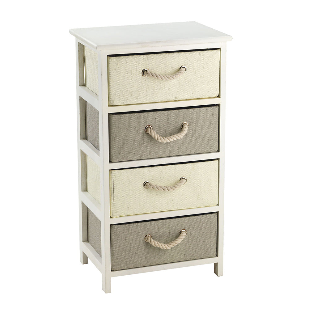 Cassetiera con 4 Cassetti in Legno e Rafia Sintentica Bianco Fadi