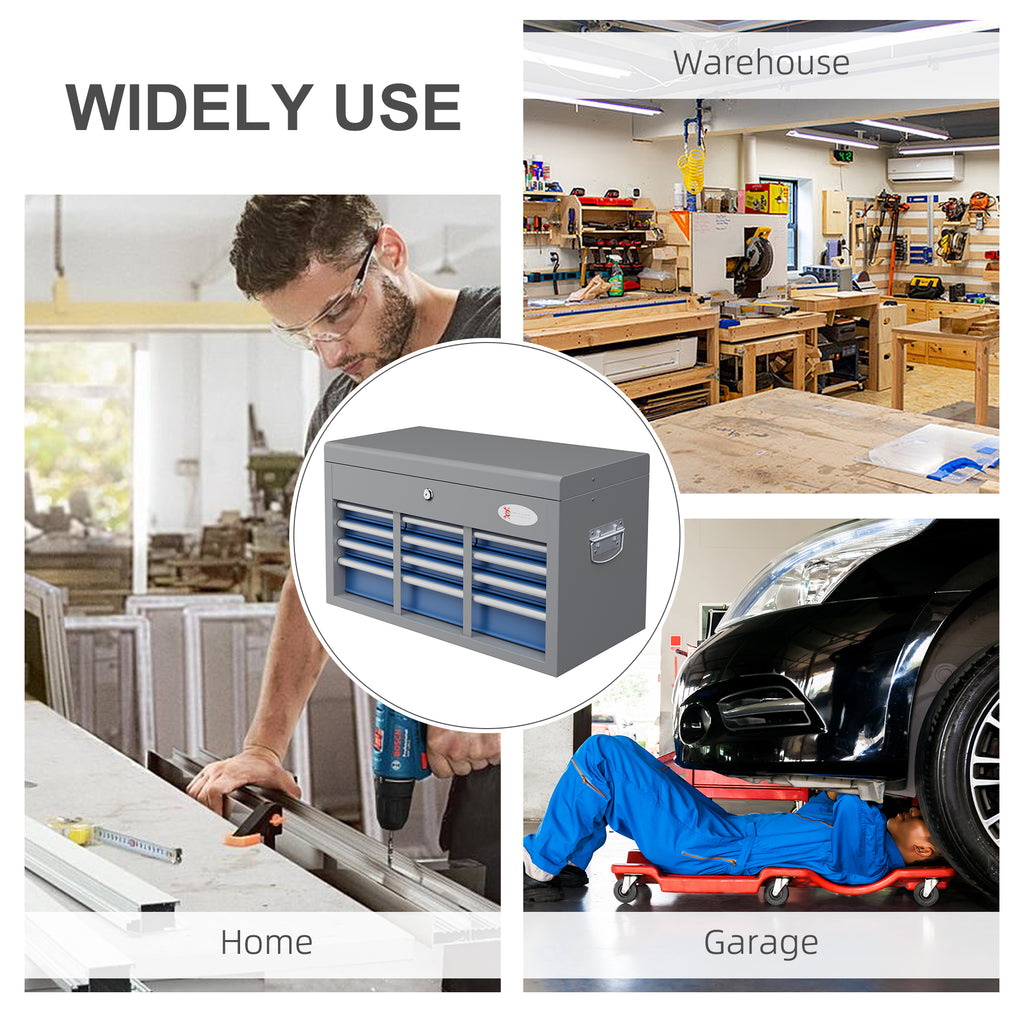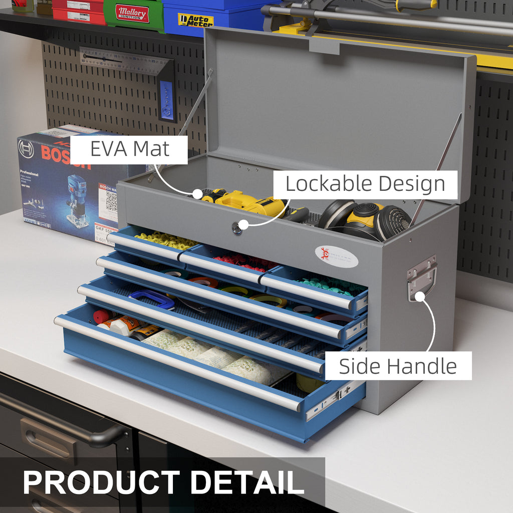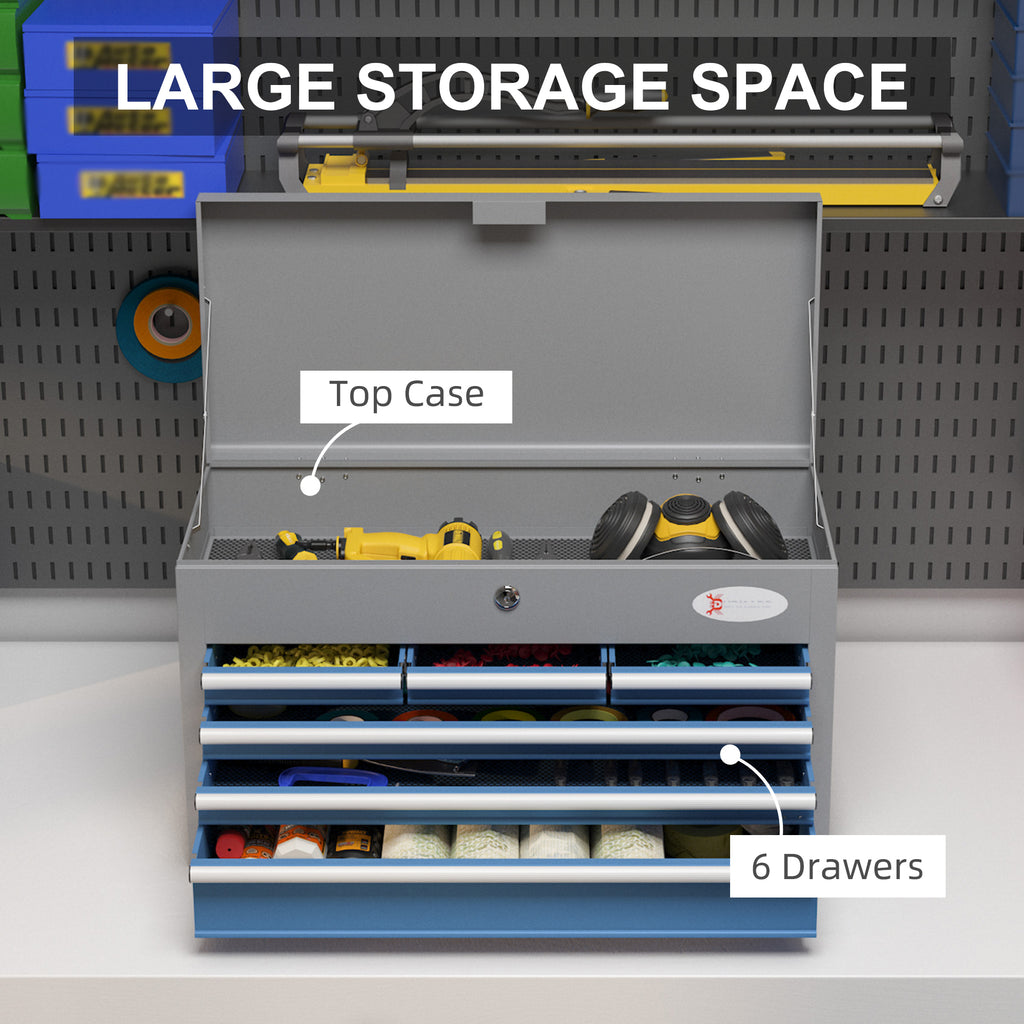 Cassetta Attrezzi con 6 Cassetti un Bauletto e 2 Chiavi 60x26x34 cm in Acciaio Blu