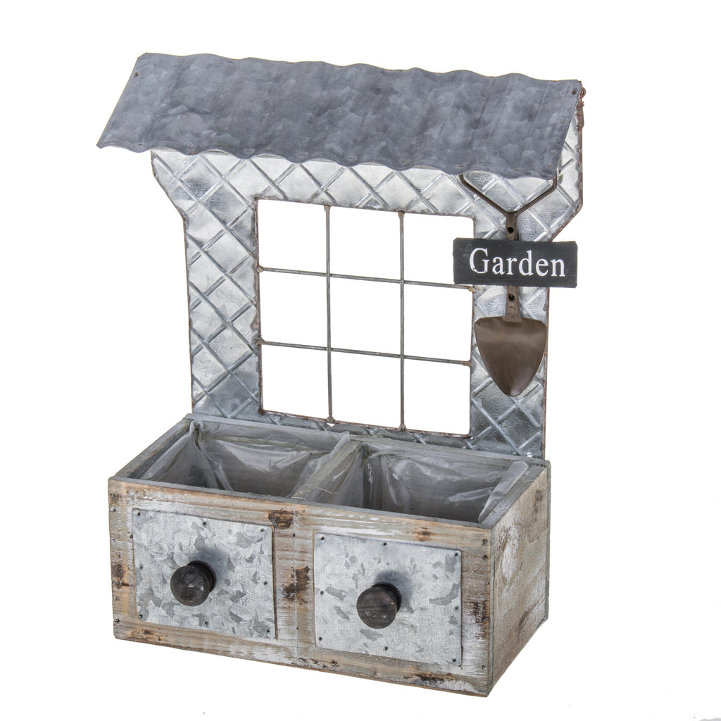 Cassetta in Legno e Metallo con Tetto da Appendere H 32 cm