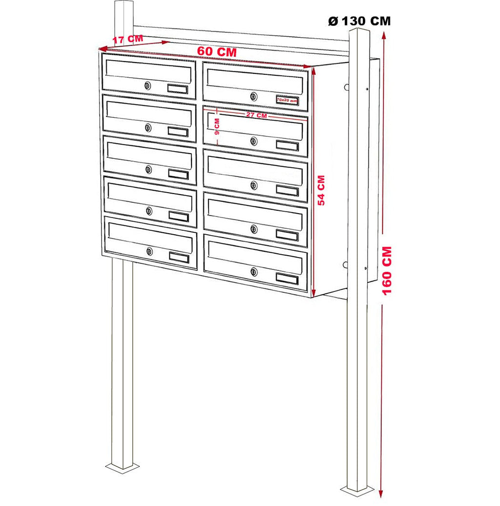 Cassetta Postale 160x60x17 cm 10 Posti con Supporto in Metallo Antracite