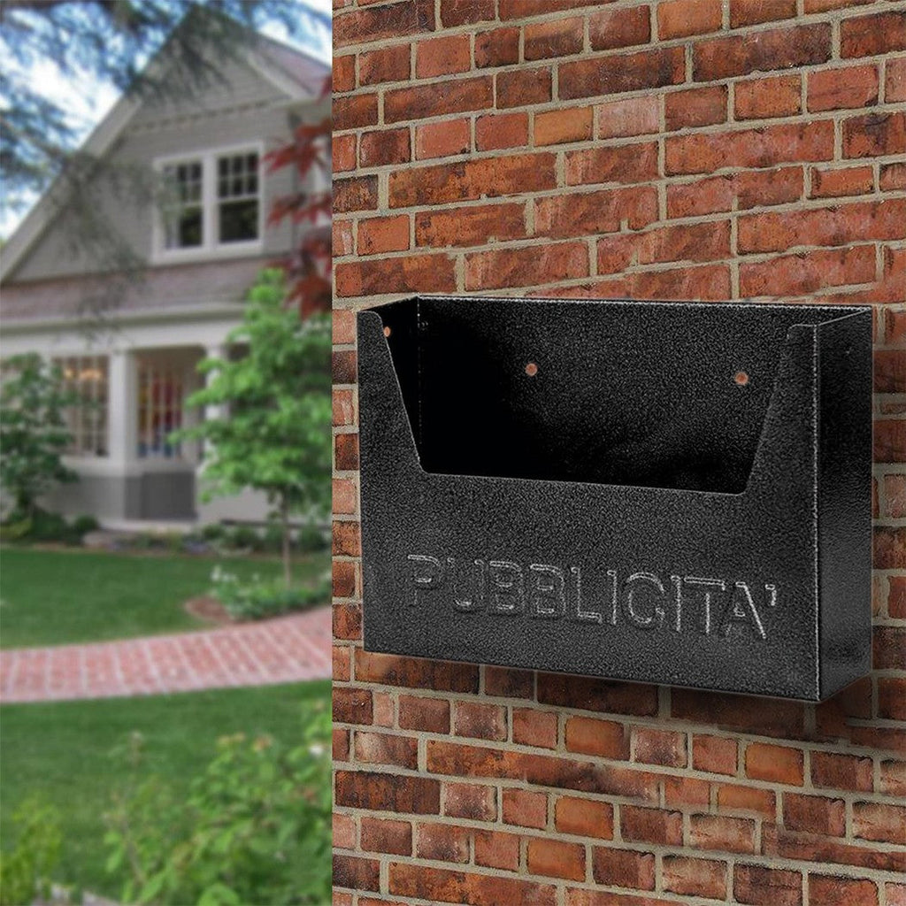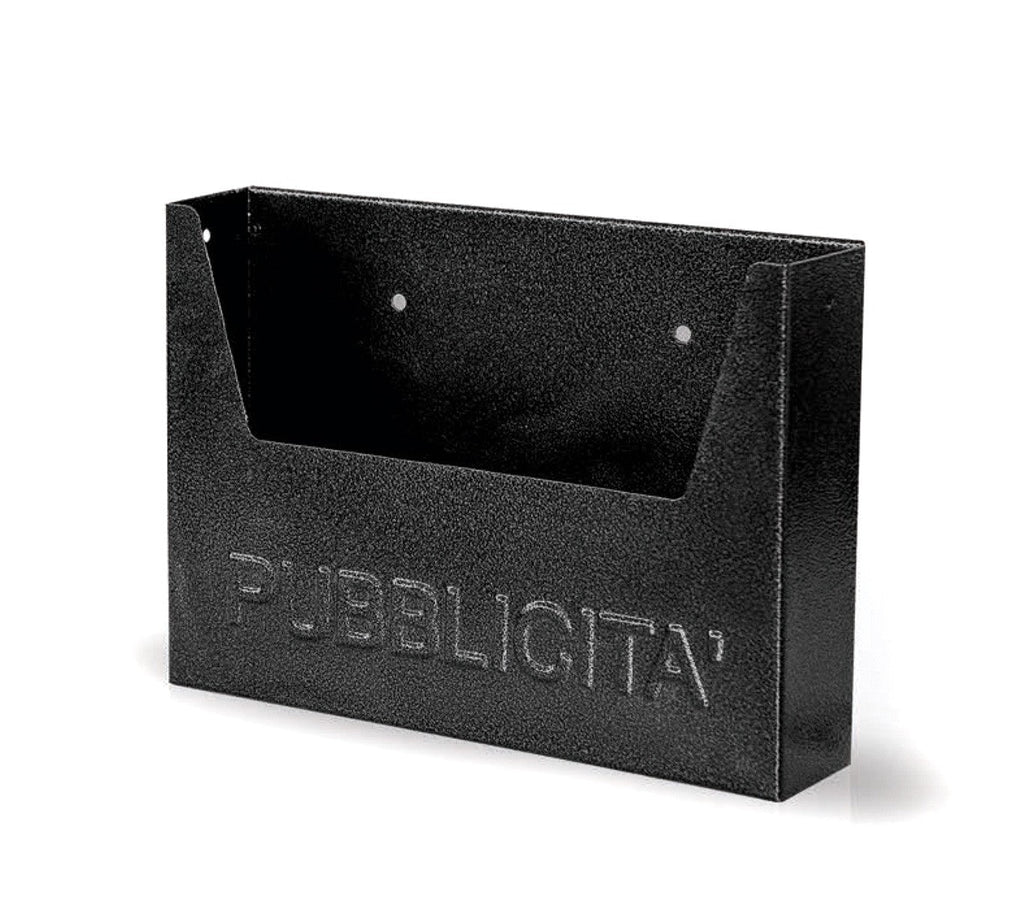 Cassetta per pubblicità dal design semplice e ideale per evitare il fastidio di ricevere volantini e depliant pubblicitari nella buca delle lettere. Struttura dotata di vaschetta larga. In ferro, resistente alle intemperie e con la predisposizione per montaggio a muro.