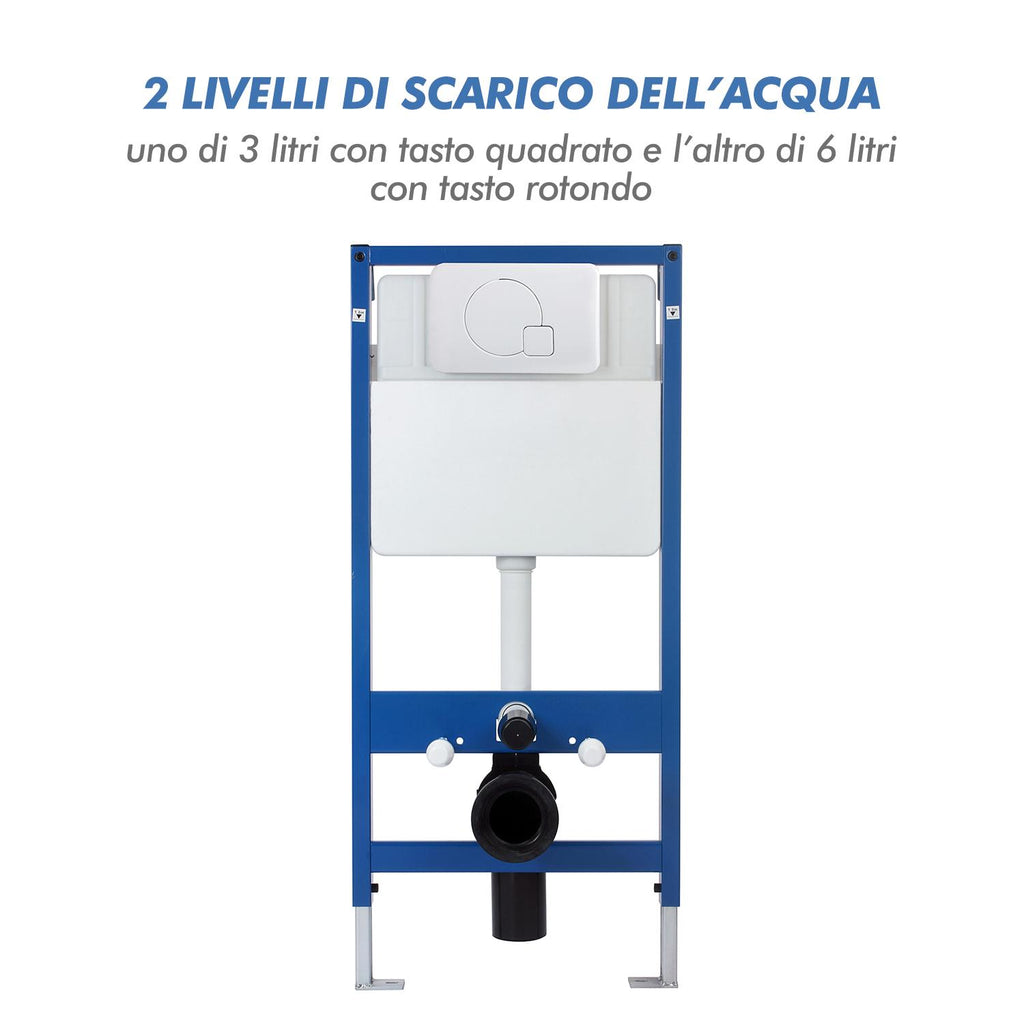 - 2 livelli di scarico dell'acqua: uno di 3 litri con tasto quadrato e l'altro di 6 litri con tasto rotondo