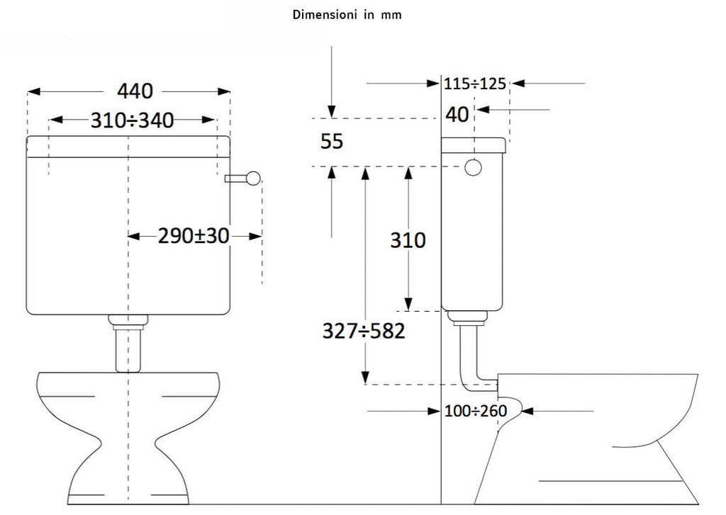 La cassetta esterna universale si adatta con estrema facilità su tutti gli impianti e su tutti i sanitari tradizionali.