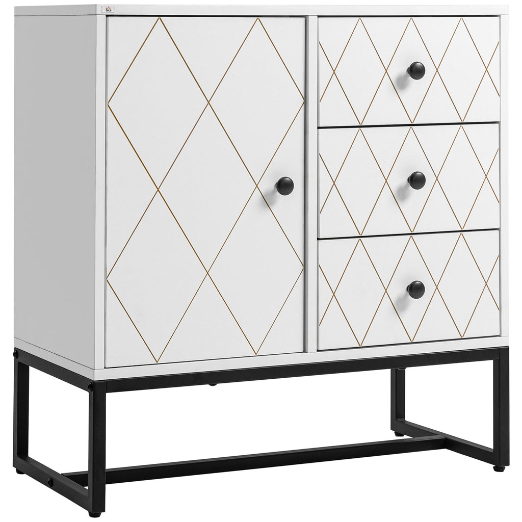 Elimina i tradizionali armadietti e dai una svolta al tuo arredamento con questa splendida cassettiera con motivo a rombi per un look elegante e di tendenza. Il mobile multiuso è dotato di cassetti e armadietti per libri, giocattoli, vestiti e decorazioni. La base in acciaio rialzata mantiene il mobile per soggiorno e robusto. I piedini regolabili garantiscono la stabilità anche su pavimenti irregolari.