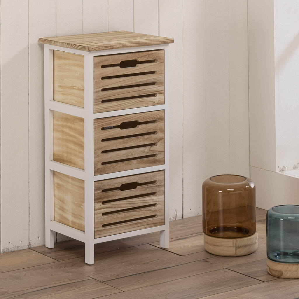 Cassettiera 3 Cassetti 35x30x70 cm Finitura Effetto Bruciato Serena Bianco/Legno