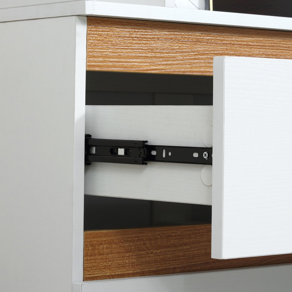- DESIGN SICURO: Il bordo rialzato della cassettiera protegge gli oggetti dalla caduta nello spazio tra il tavolo e la parete. I cassetti sono dotati di guide a sfera in metallo per una chiusura lenta, che protegge le mani da eventuali infortuni accidentali