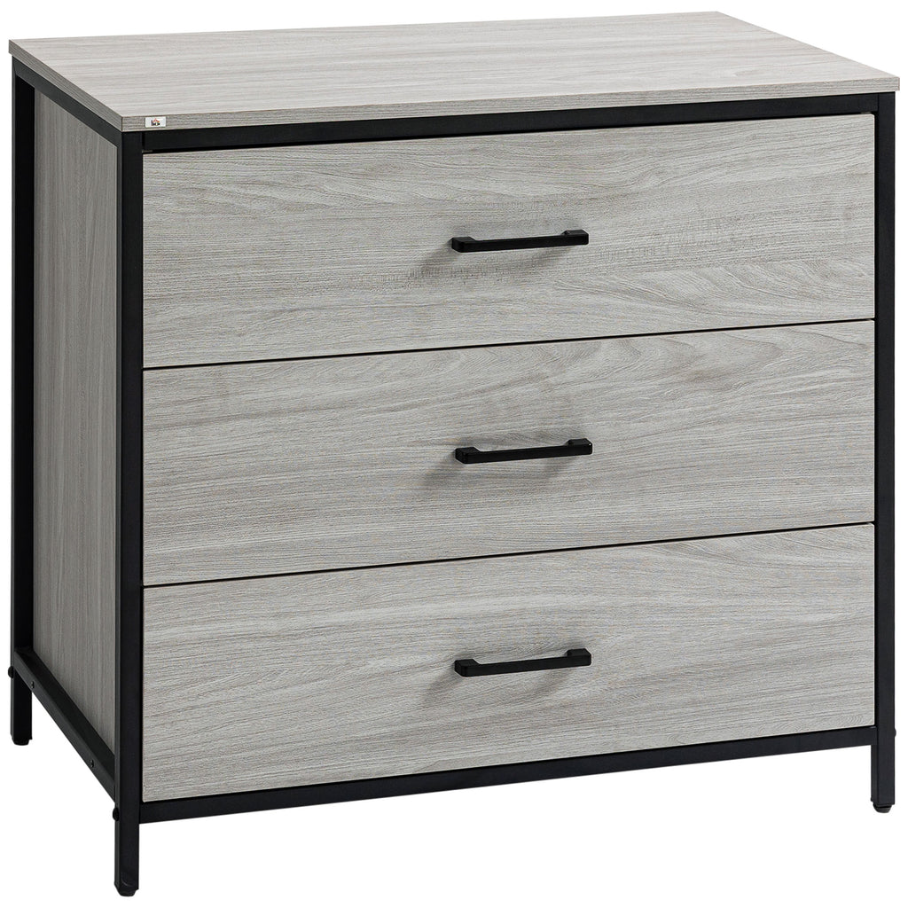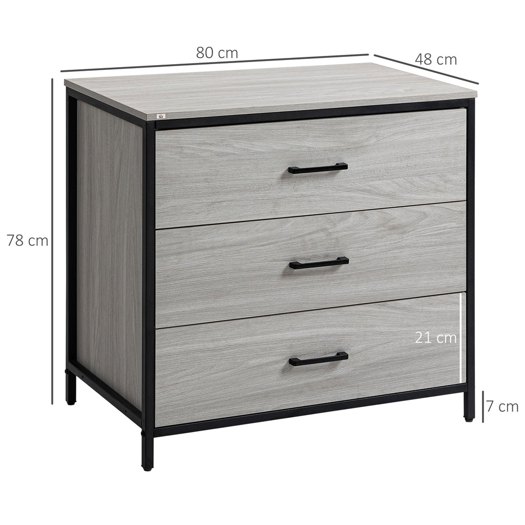Cassettiera 3 Cassetti 80x48x78 cm in Legno e Acciaio Grigio Chiaro