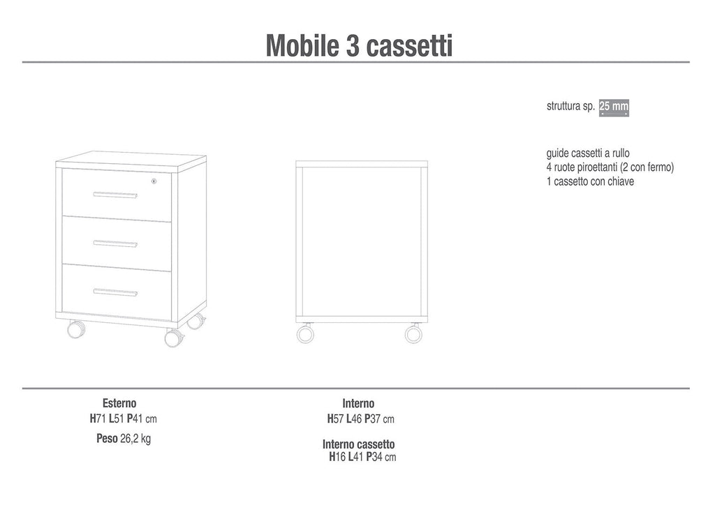 Cassettiera 3 Cassetti con Ruote 51x71x41 cm Noce Stelvio/Ossido Bianco