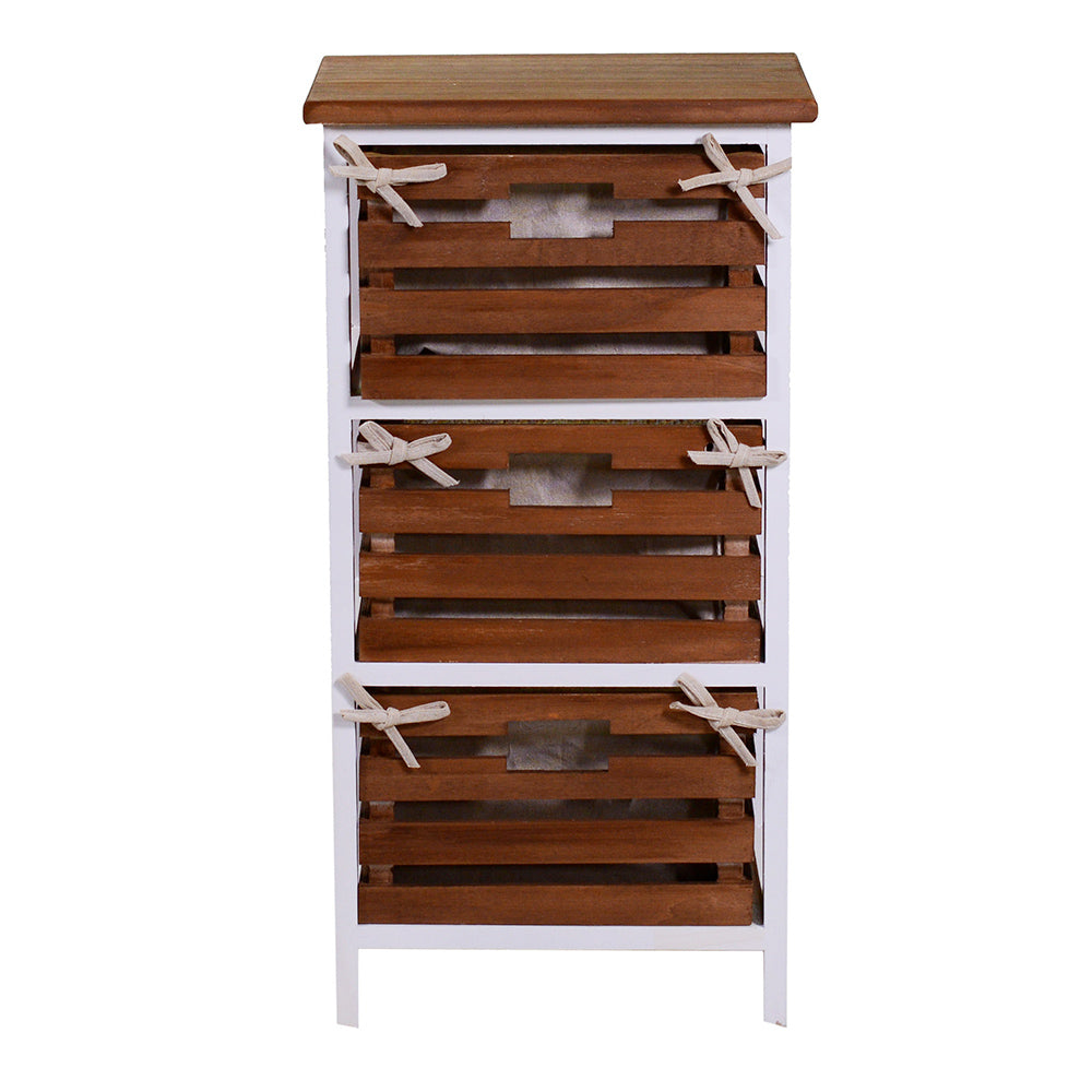 Cassettiera 3 Cassetti in Legno 35x27x66cm Atena Noce e Bianca