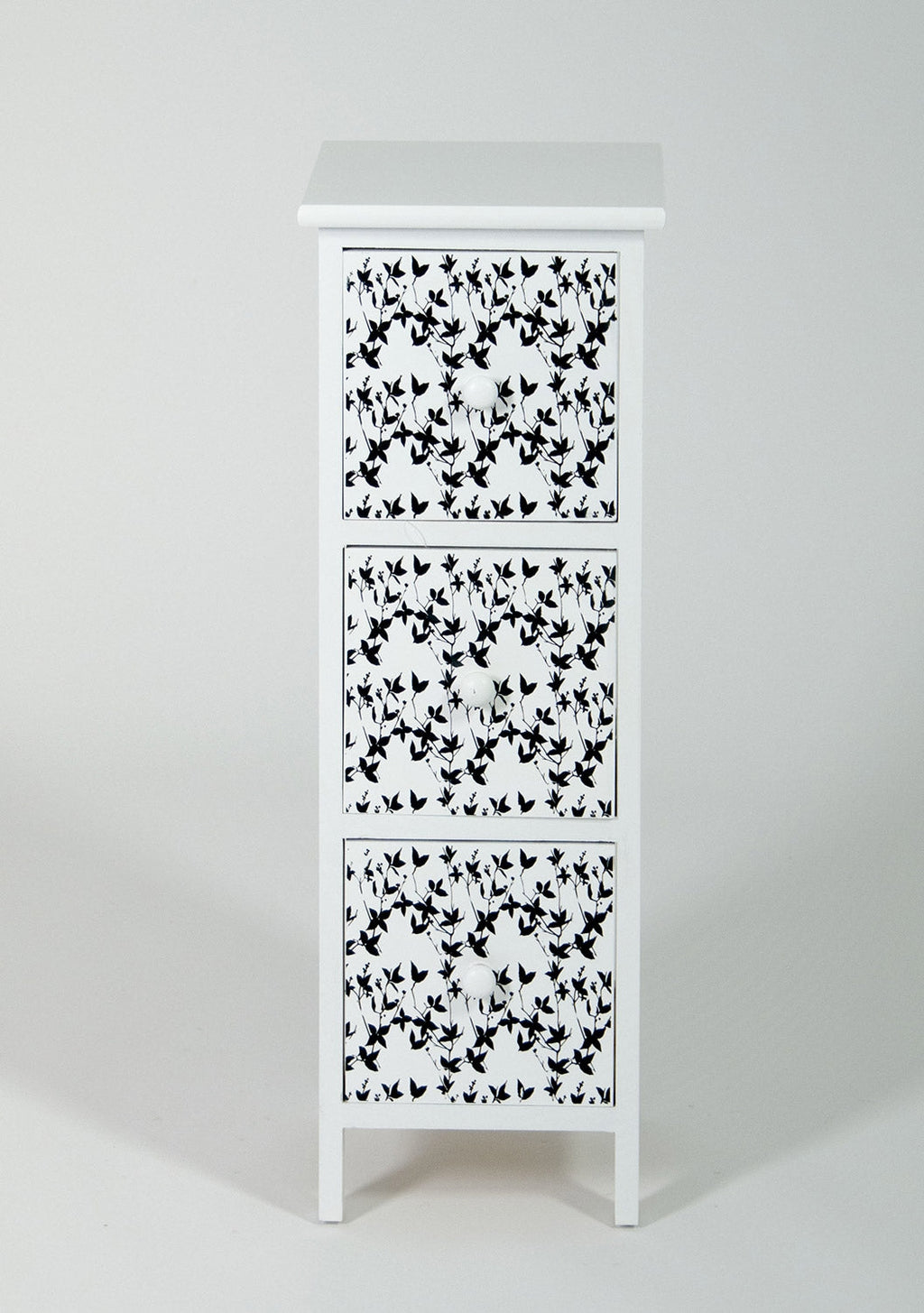 Cassettiera 3 Cassetti in Legno Massello 25x25x71 cm Fumer Fanny Bianca