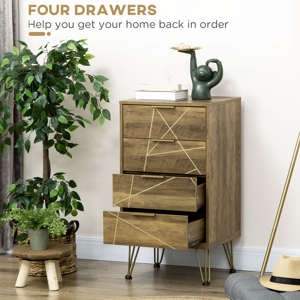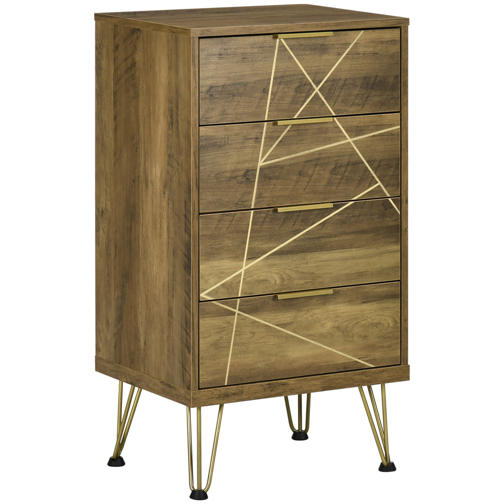 Cassettiera 4 Cassetti 48x21x79 cm in Truciolato Legno e Oro