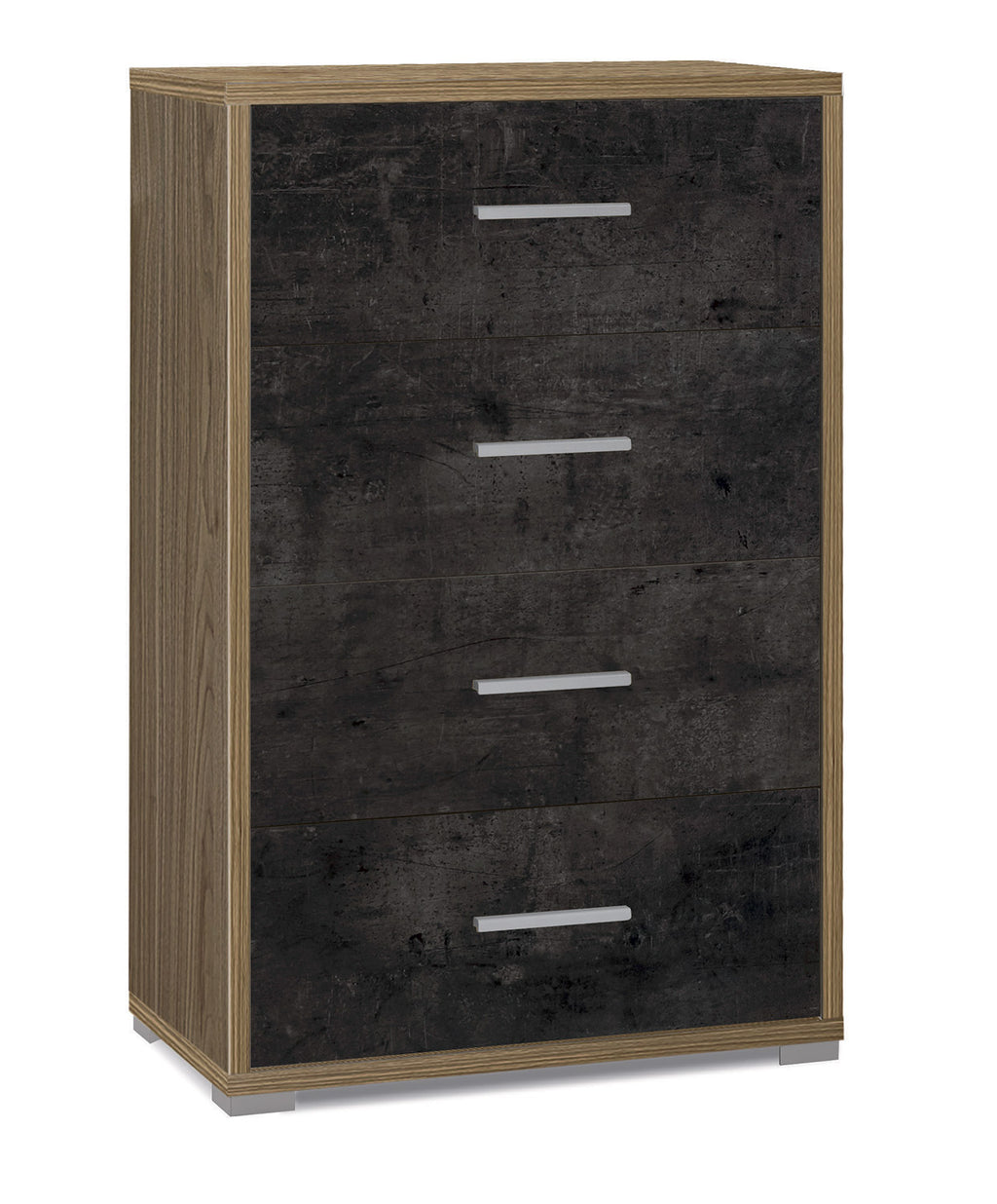 Cassettiera 4 Cassetti 71x110x41 cm Noce Stelvio/Ossido Nero