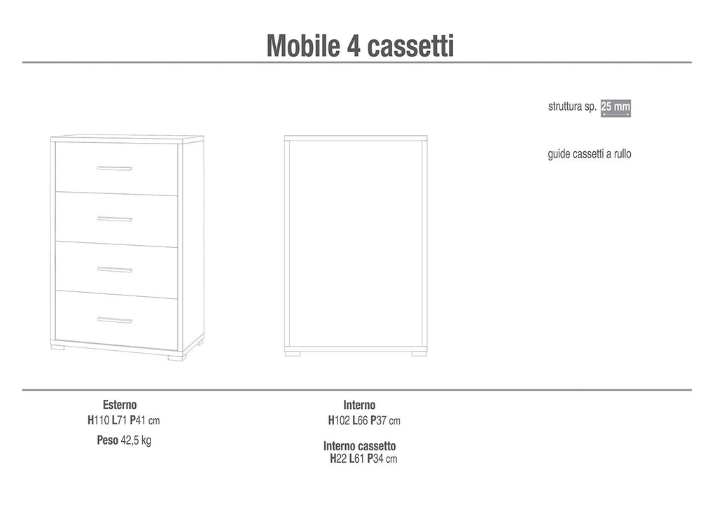 - Cassettiera 4 Cassetti