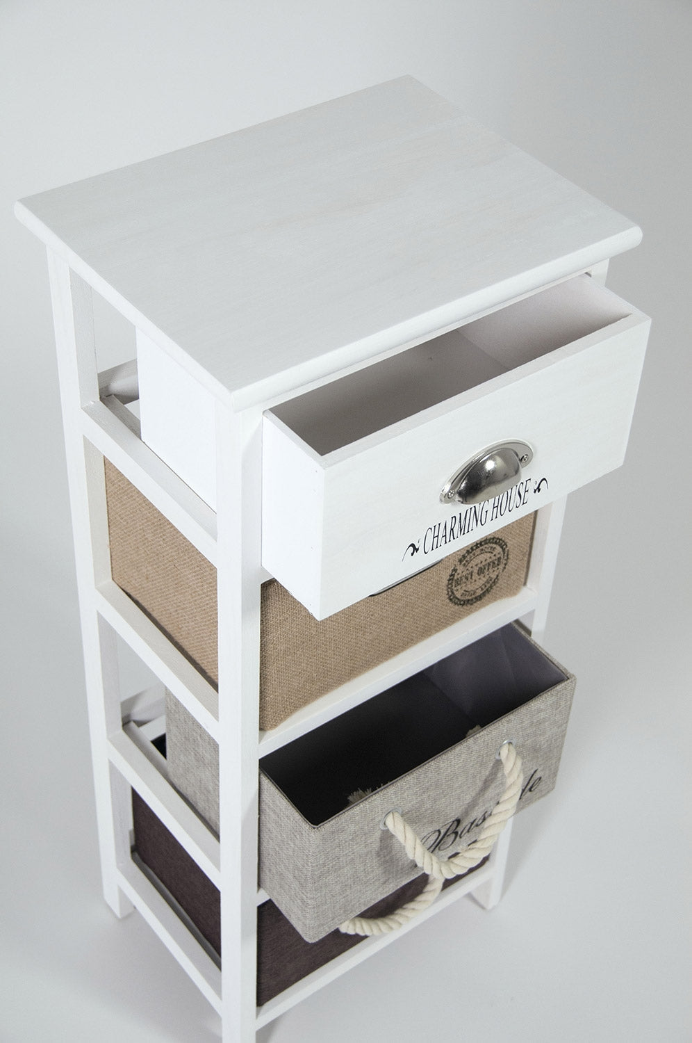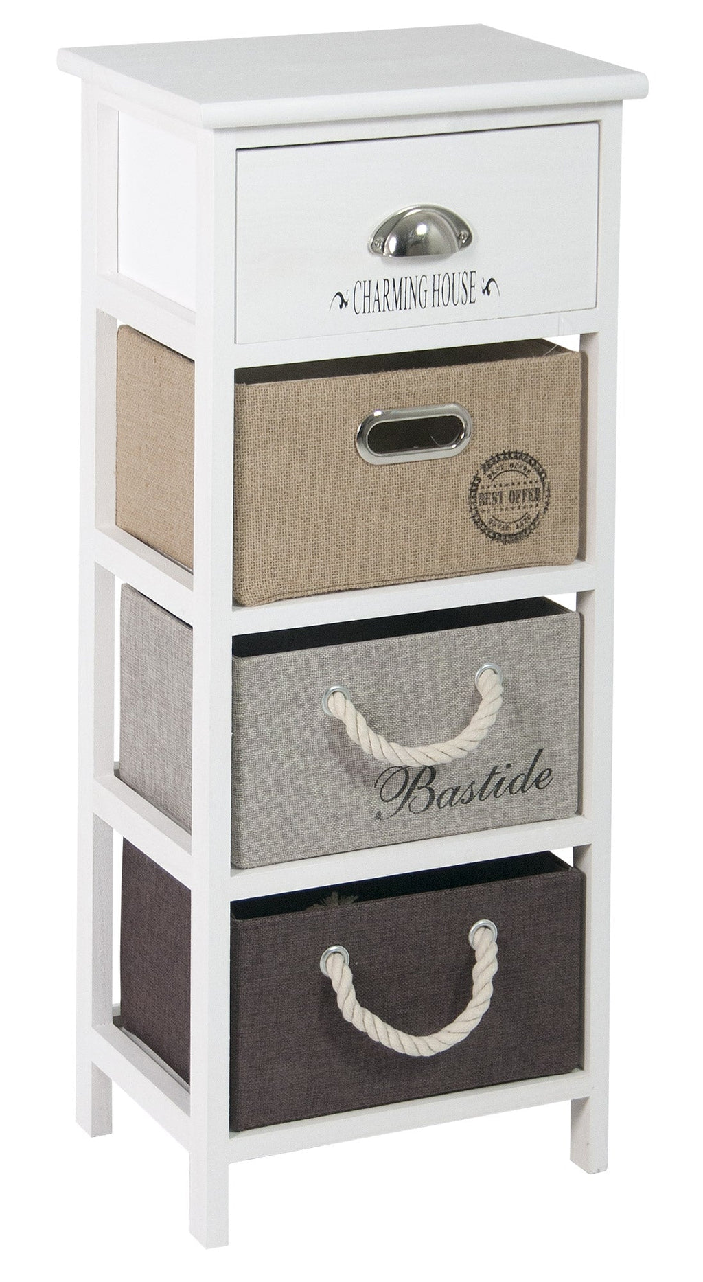 - 3 Casetti in tessuto + 1 in legno con maniglia in metallo