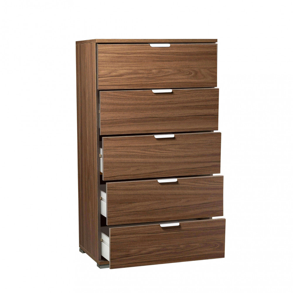 Cassettiera 5 Cassetti Tinta Noce 60x38x103 h cm in Truciolare bilaminato Marrone