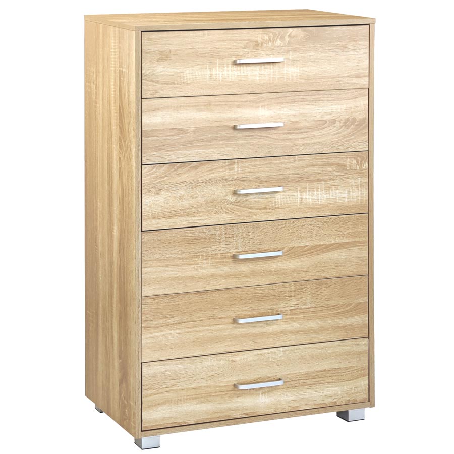 Cassettiera 6 Cassetti 68x40x115 cm in Legno Nancy Rovere
