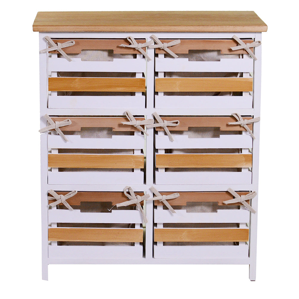 Cassettiera 6 Cassetti in Legno 58x30x66cm Matilda Noce Chiaro e Bianca