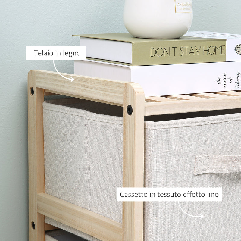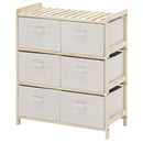 Cassettiera 6 Cassetti in Tessuto Pieghevoli ed Estraibili 59x28x70 cm Beige/Legno