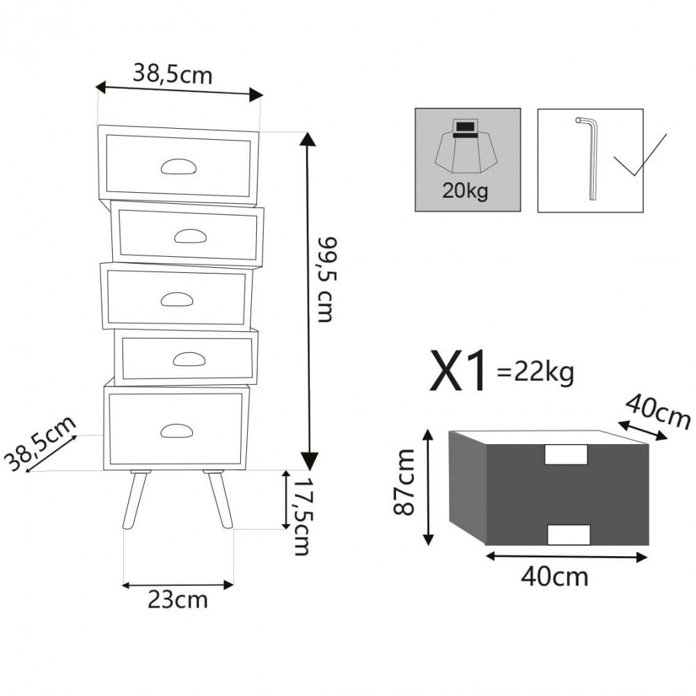 Cassettiera Colorado 40x36,5x99 h cm in Legno Multicolor