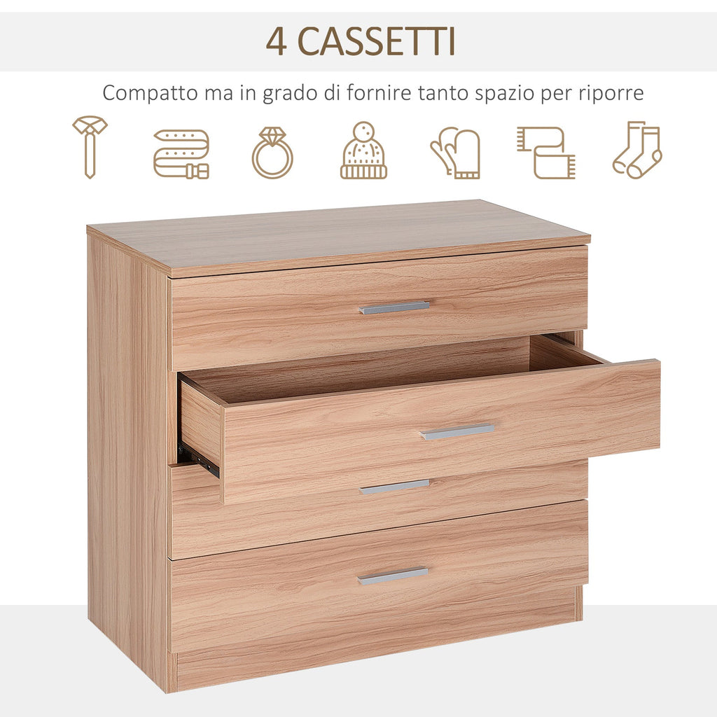 Cassettiera con 4 Cassetti in Legno 72x33.5x67 cm