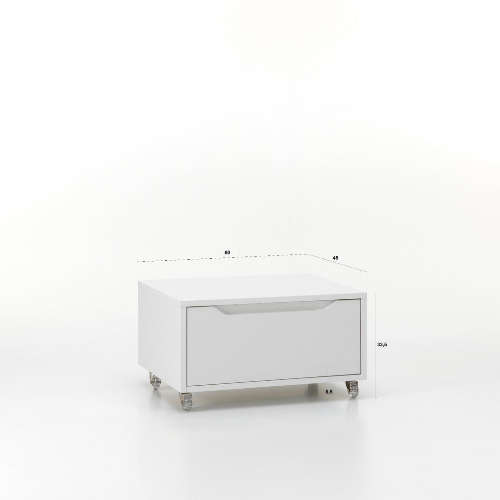 Cassettiera con Ruote 1 Cassetto 60x45x32 cm in Legno TFT Belsk Bianco e Cemento
