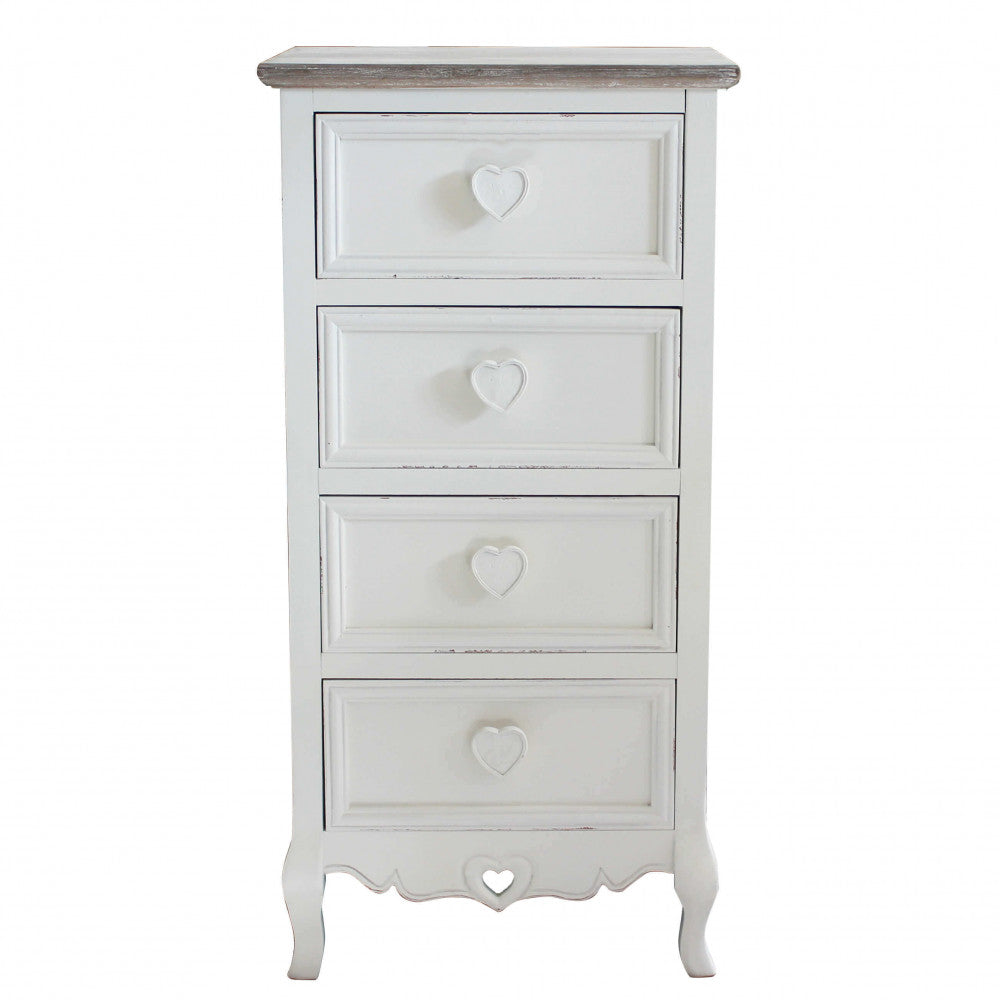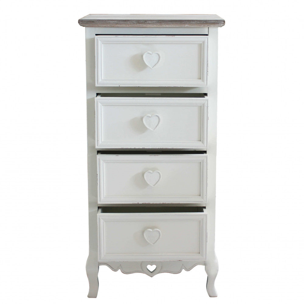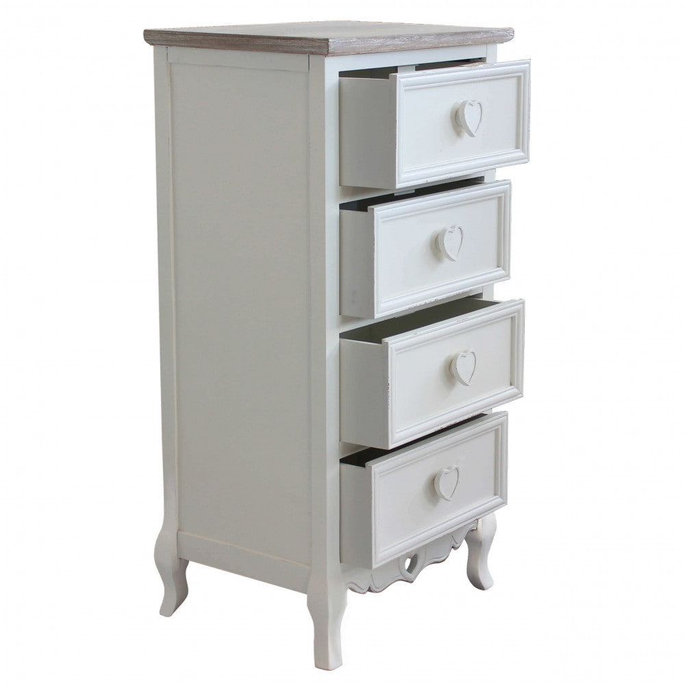 Cassettiera Cuore 4 Cassetti 44x34x90 h cm in Legno di paulownia Bianco