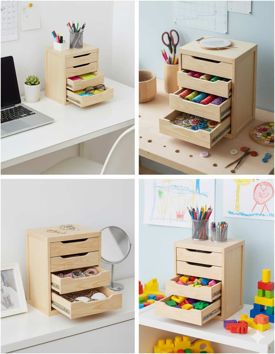 Da ora in poi, con le pratiche e robuste cassettiere in pino massiccio grezzo, ogni cosa sarà al suo posto.