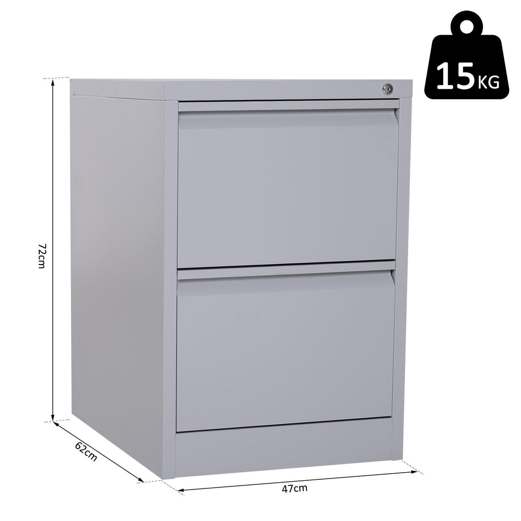 Cassettiera da Ufficio per Documenti 2 Cassetti con Chiusura di Sicurezza in Acciaio 47x62x72 cm