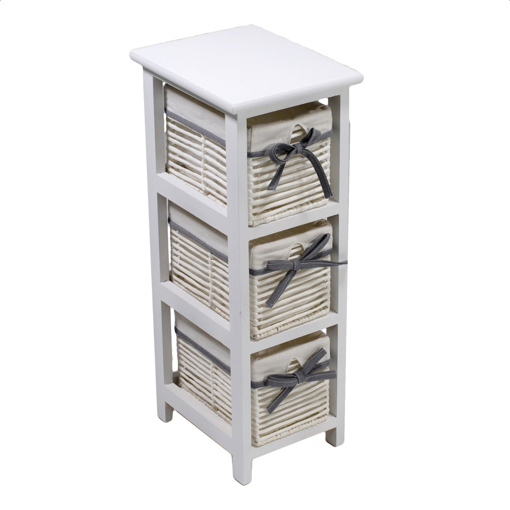 Cassettiera in Legno 3 Cassetti 22x28H65cm Hilary Bianca