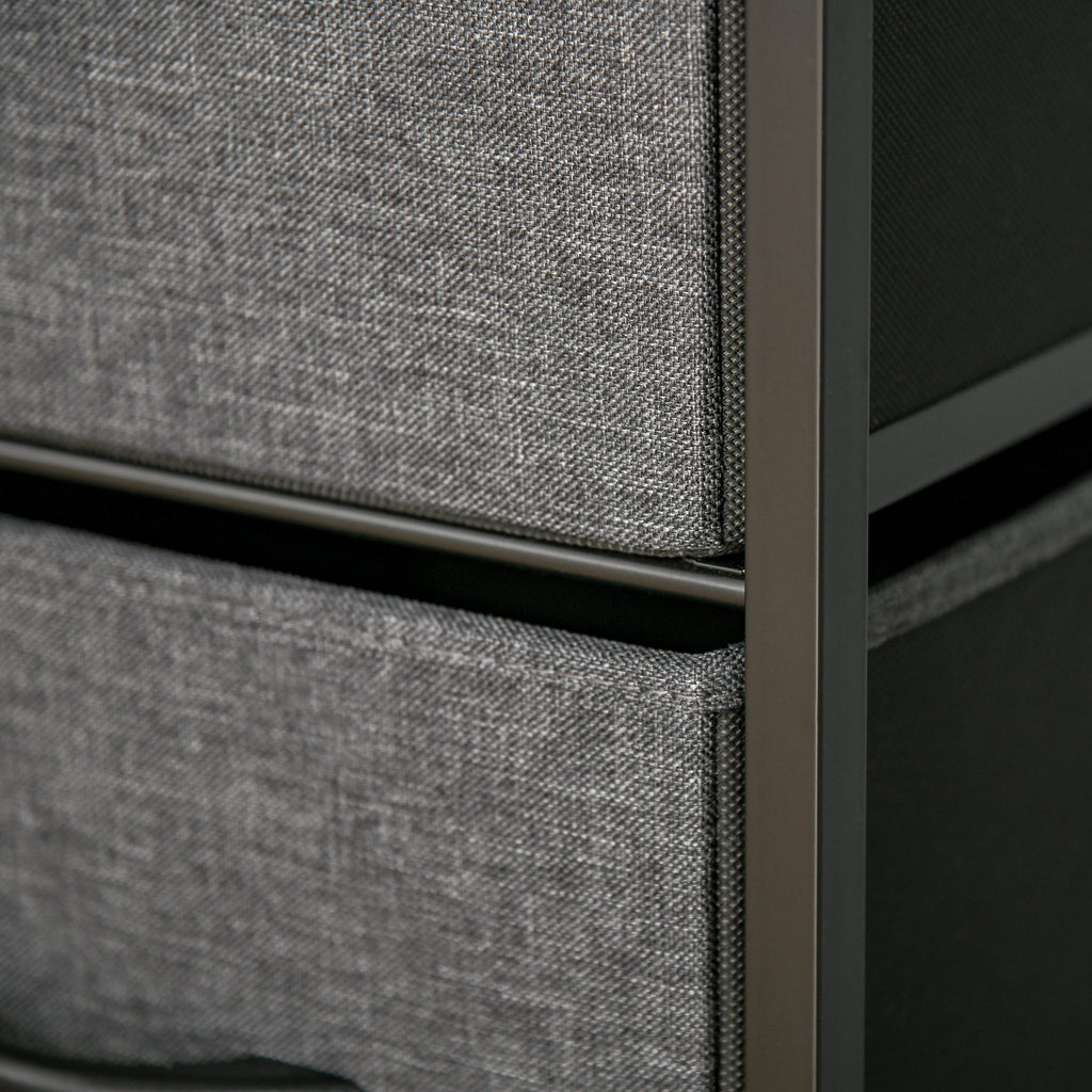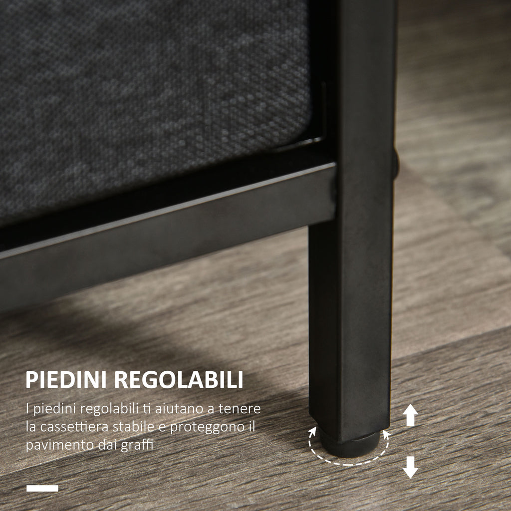 Questo pratico mobile cassettiera è il complemento di arredo perfetto per tenere ogni tuo oggetto in ordine. È composto da un ampio piano d'appoggio, un vano aperto e 4 cassetti pieghevoli in tessuto, per darti tanto spazio in cui riporre vestiti, giochi, accessori e molto altro. Grazie alla robusta struttura in metallo, ai piedini e al sistema antiribaltamento ti offre la massima stabilità e sicurezza di utilizzo.