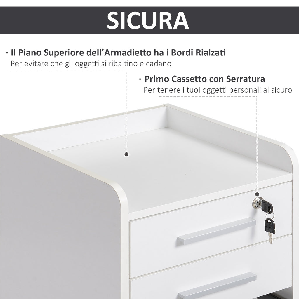 - CASSETTI: Sogni un ufficio ordinato? Con questa cassettiera, puoi! Hai a disposizione 3 cassetti, in cui puoi organizzare fatture, documenti e molto altro. Il cassetto superiore è dotato di una serratura e 2 chiavi, può assicura sicurezza ai vostri oggetti.