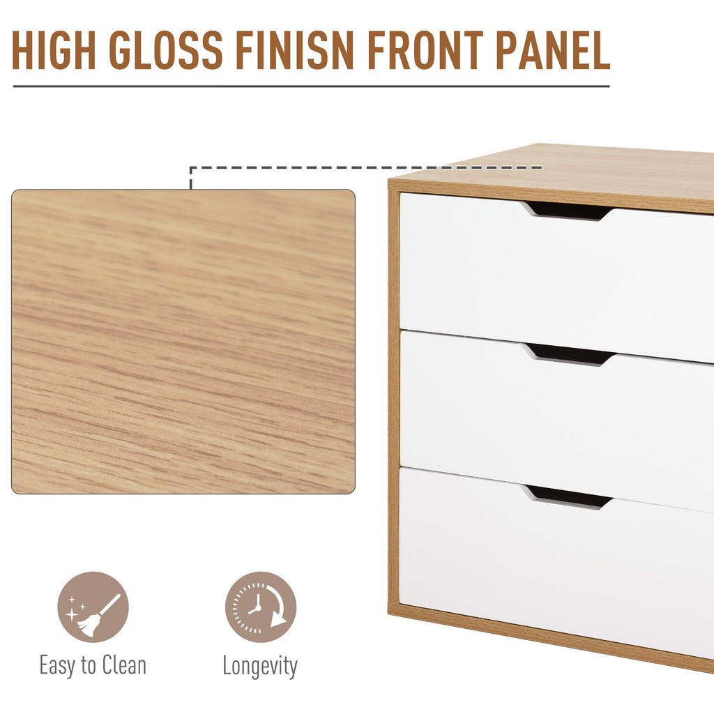 È ora di dare uno sprint ai tuoi spazi! Con la cassettiera porti uno tocco di stile in ogni ambiente e una soluzione pratica per tenere tutto in ordine. Il mobile cassettiera ha un design con colori a contrasto, con struttura color legno e cassetti con finitura lucida, capace di portare un tocco di stile unico in ogni ambiente. I 3 cassetti offrono un ampio spazio per tenere in ordine tutto ciò che ti serve. È una soluzione versatile adatta per ogni stanza dell'ufficio e della casa.
