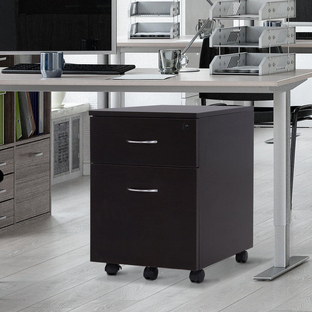 Cassettiera Portadocumenti da Ufficio in Legno 2 Cassetti per A4 Chiusura di Sicurezza Nera