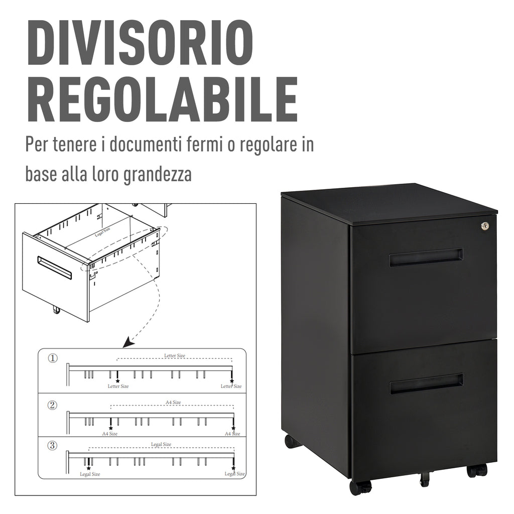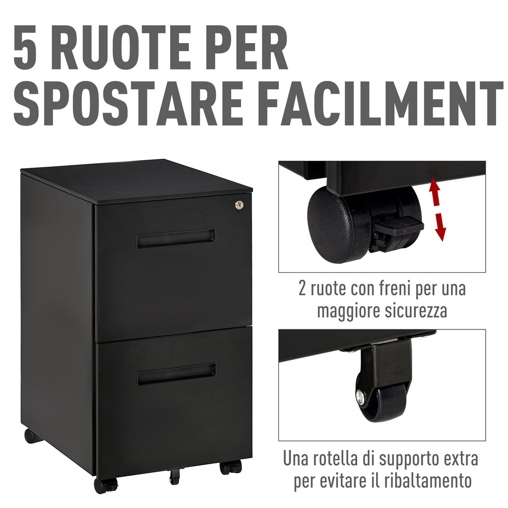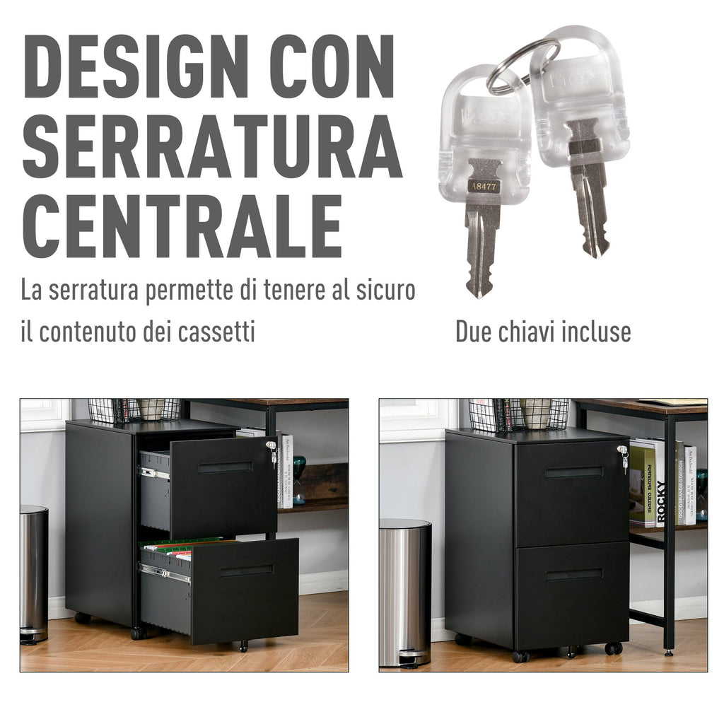 Cassettiera Schedario 2 Cassetti da Ufficio 39x48x67 cm in Acciaio Nero