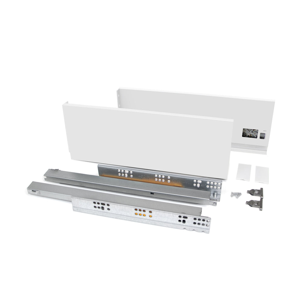 - Kit di accessori necessari per il montaggio del cassetto esterno di altezza 131 mm e profondità d 450 mm, a eccezione di frontalino, retro e fondo.