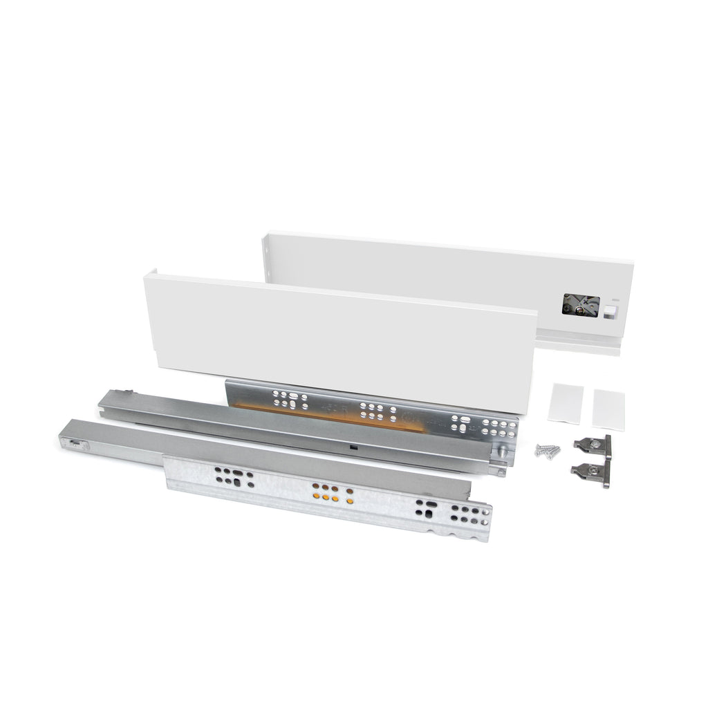 - Kit di accessori necessari per il montaggio del cassetto esterno di altezza 93 mm e profondità d 300 mm, a eccezione di frontalino, retro e fondo.