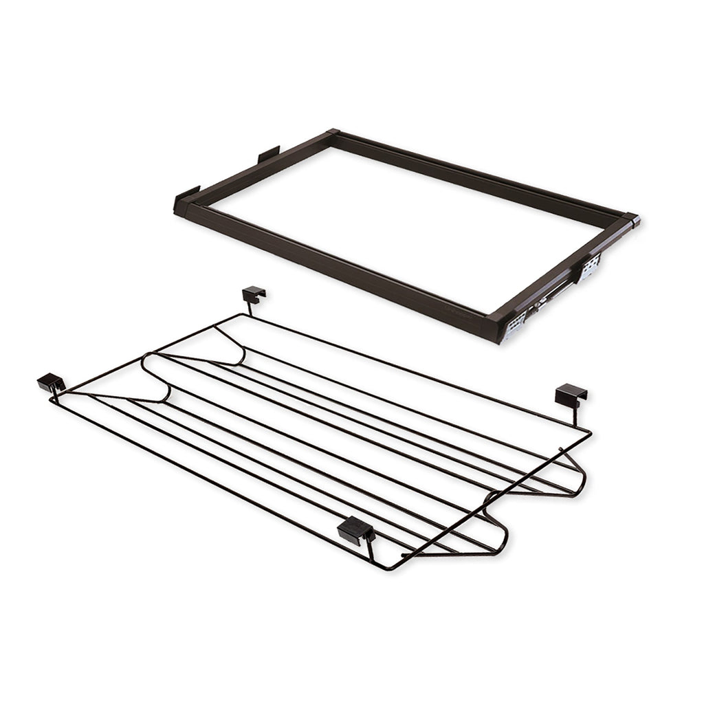 - Kit composto da un cassetto porta scarpe largo 675mm e da un telaio con guide di larghezza regolabile.