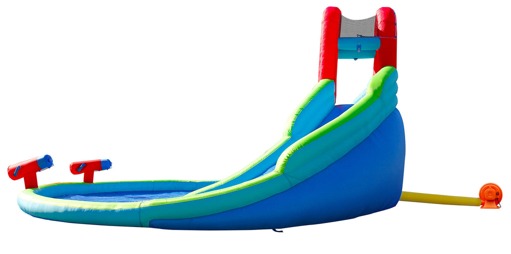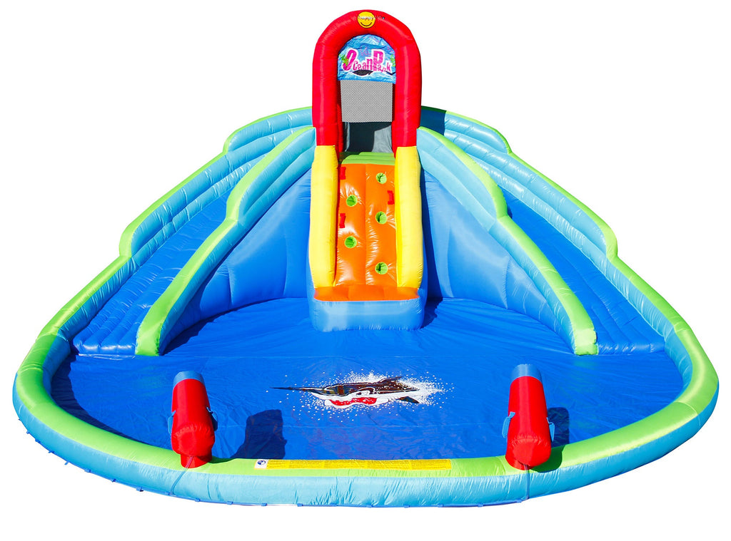 Questo scivolo d'acqua rappresenta un vero e proprio parco acquatico di grandi dimensioni ed è l'attività estiva perfetta per i piccoli appassionati di mare. Include un mix di attività divertenti come gli ampi scivoli laterali, la grande piscina, la parete per l'arrampicata e i due grandi cannoni spara acqua.